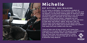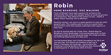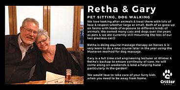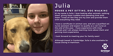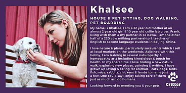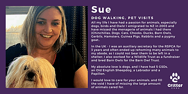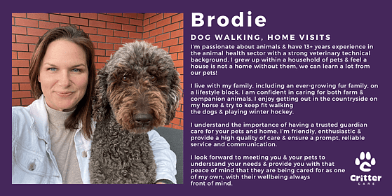 If you need someone to look after your furry friend while you're away, look no further than Critter Care! We're a friendly and professional team who've been caring for pets in the Waikato region since 2015.